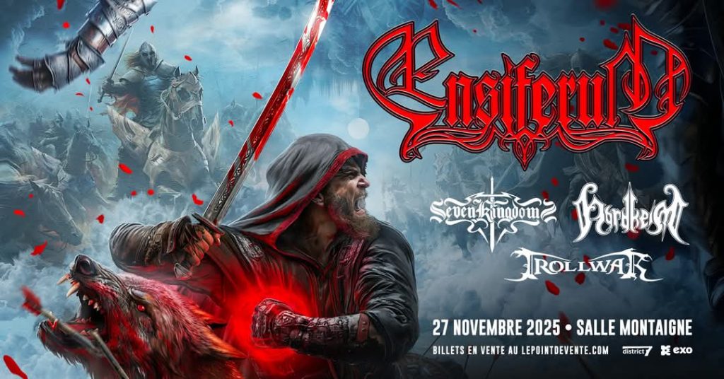 La mythique formation folk metal Ensiferum sera de passage à Québec le 27 novembre 2025 pour une soirée épique à la Salle Montaigne! Le groupe finlandais sera accompagné d’un solide trio de groupes : les power metalleux américains Seven Kingdoms, ainsi que deux fiers représentants du folk metal québécois, Nordheim et TrollWar.