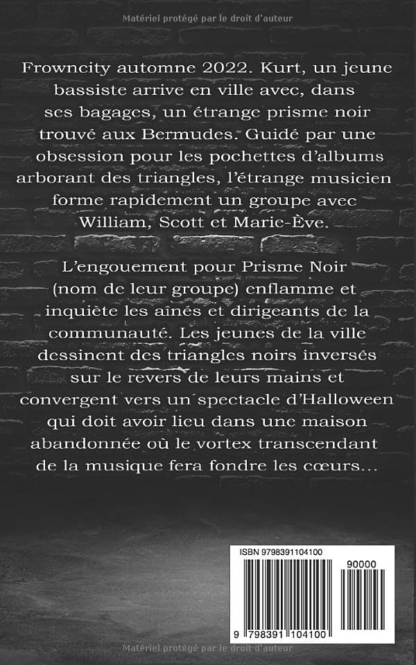 Petit à petit, il attire Marie-Ève, Scott et William lors de jam sessions improvisées. Ensemble, ils forment le groupe Prisme Noir, qui reprend des titres célèbres de ces groupes rocks symbolisés par le triangle. Mais attention : ce qui commence comme un simple projet musical prend vite une tournure étrange. Tous ceux qui veulent intégrer le groupe doivent arborer un triangle inversé tatoué sur la main, et les spectateurs sont eux-mêmes estampillés du même symbole. L’engouement est démentiel parmi les marginaux… mais beaucoup moins bien accueilli par les adultes et les autorités de la ville.