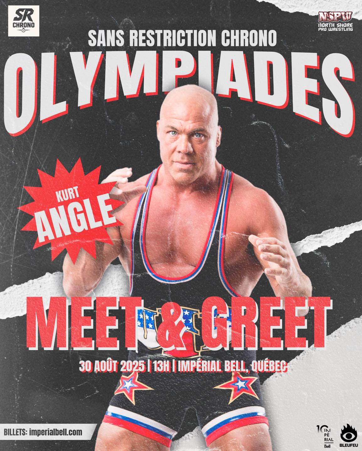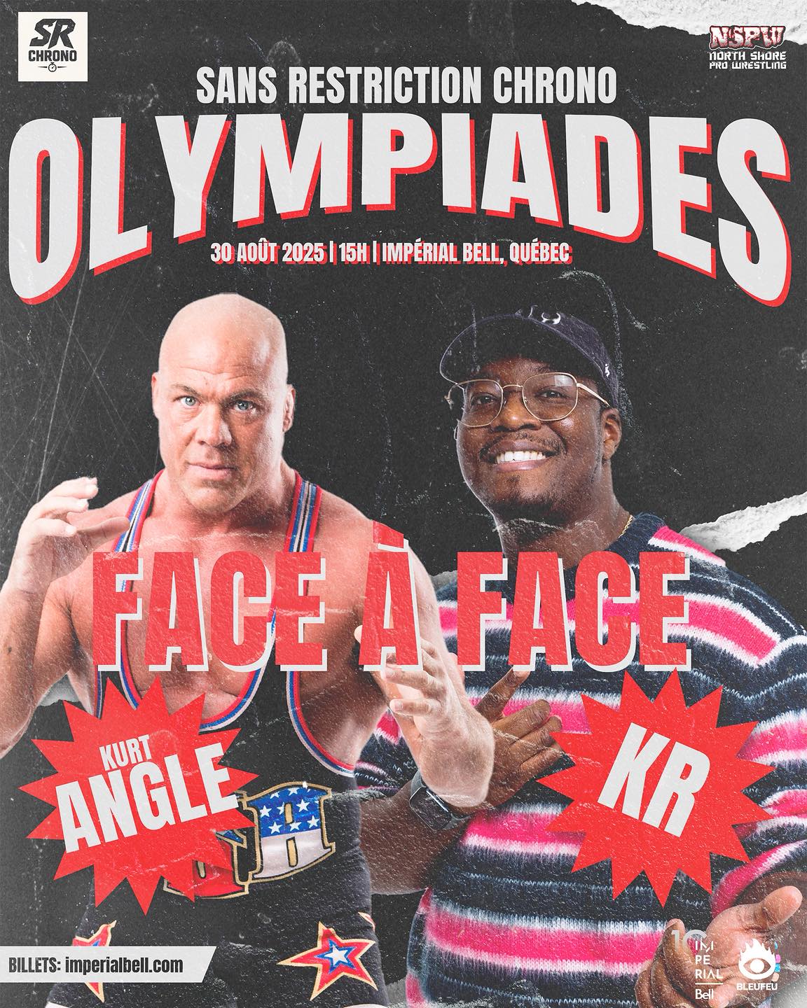 Le rendez-vous de la lutte professionnelle le plus explosif de l’été débarque à Québec! En collaboration avec la NSPW, cette édition spéciale promet une soirée inoubliable, alors que la légende vivante de la lutte Kurt Angle sera de passage à Québec pour la première fois en 17 ans et demi. L’ancien champion olympique et membre du WWE Hall of Fame affrontera verbalement Kevin Raphaël dans un face à face historique, marquant un moment charnière pour la scène de la lutte professionnelle au Québec.