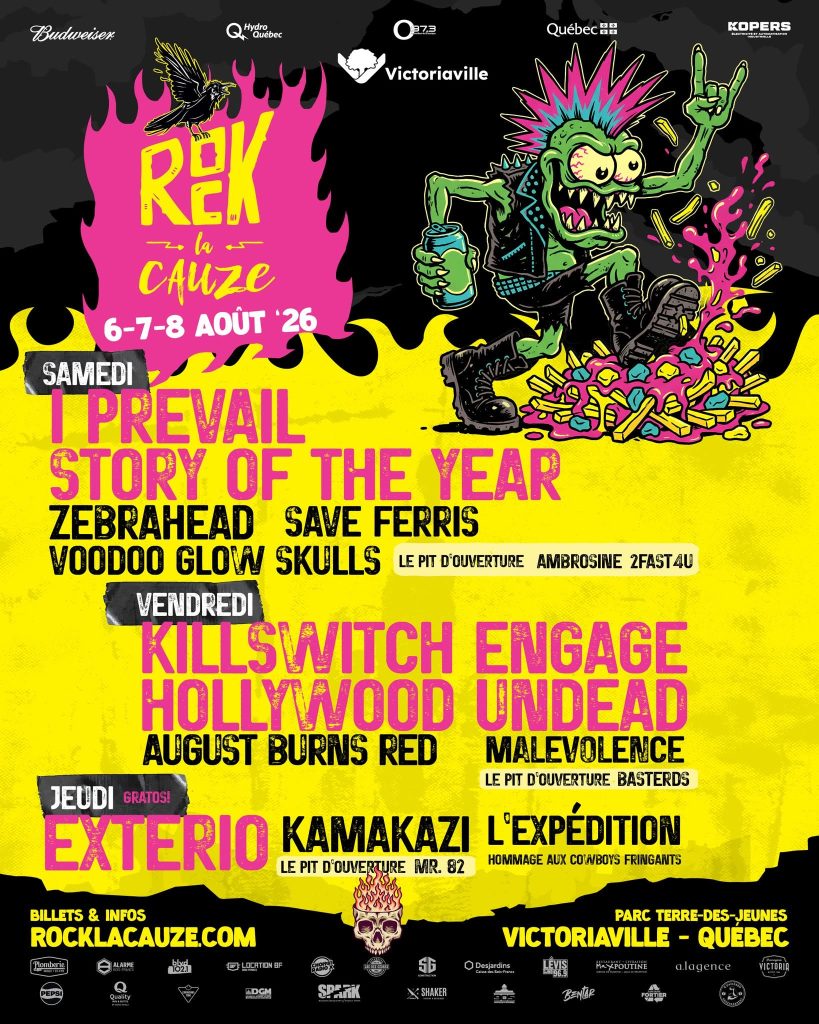Rock la Cauze s’impose fièrement comme l’un des festivals rock incontournables au Canada. Chaque été à Victoriaville, des milliers de festivaliers se rassemblent pour trois journées explosives de rock, punk, métal et hardcore. Des têtes d’affiche internationales partagent la scène avec des artistes émergents dans une ambiance brute, intense et inoubliable. Plus qu’un simple festival, Rock la Cauze soutient chaque année des causes locales significatives, transformant la musique en véritable impact. Du gros son, une vraie communauté, une énergie pure, c’est ça Rock la Cauze.