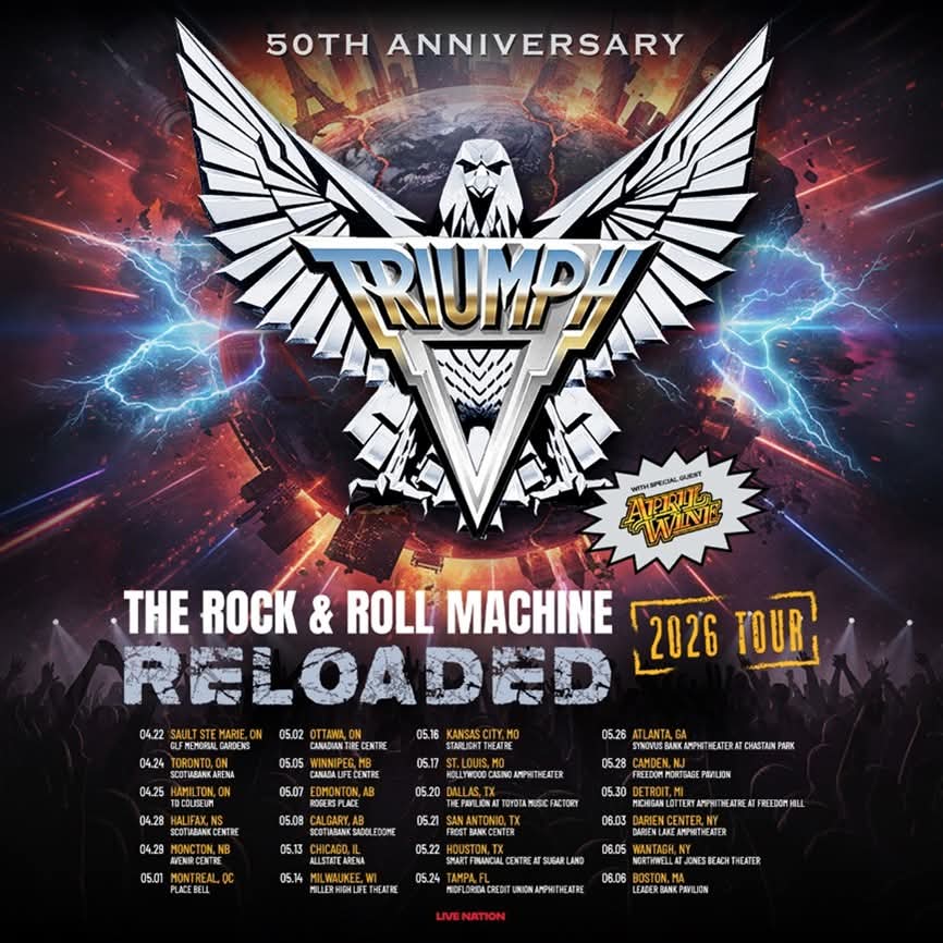 Triumph reprend enfin la route. Les légendes canadiennes du rock annoncent leur première tournée complète en trois décennies, la Triumph 50th Anniversary North American Tour, une série de concerts produits par Live Nation qui célèbrent cinq décennies de succès, de prouesses scéniques et d’un héritage musical qui continue d’influencer des générations de fans.
