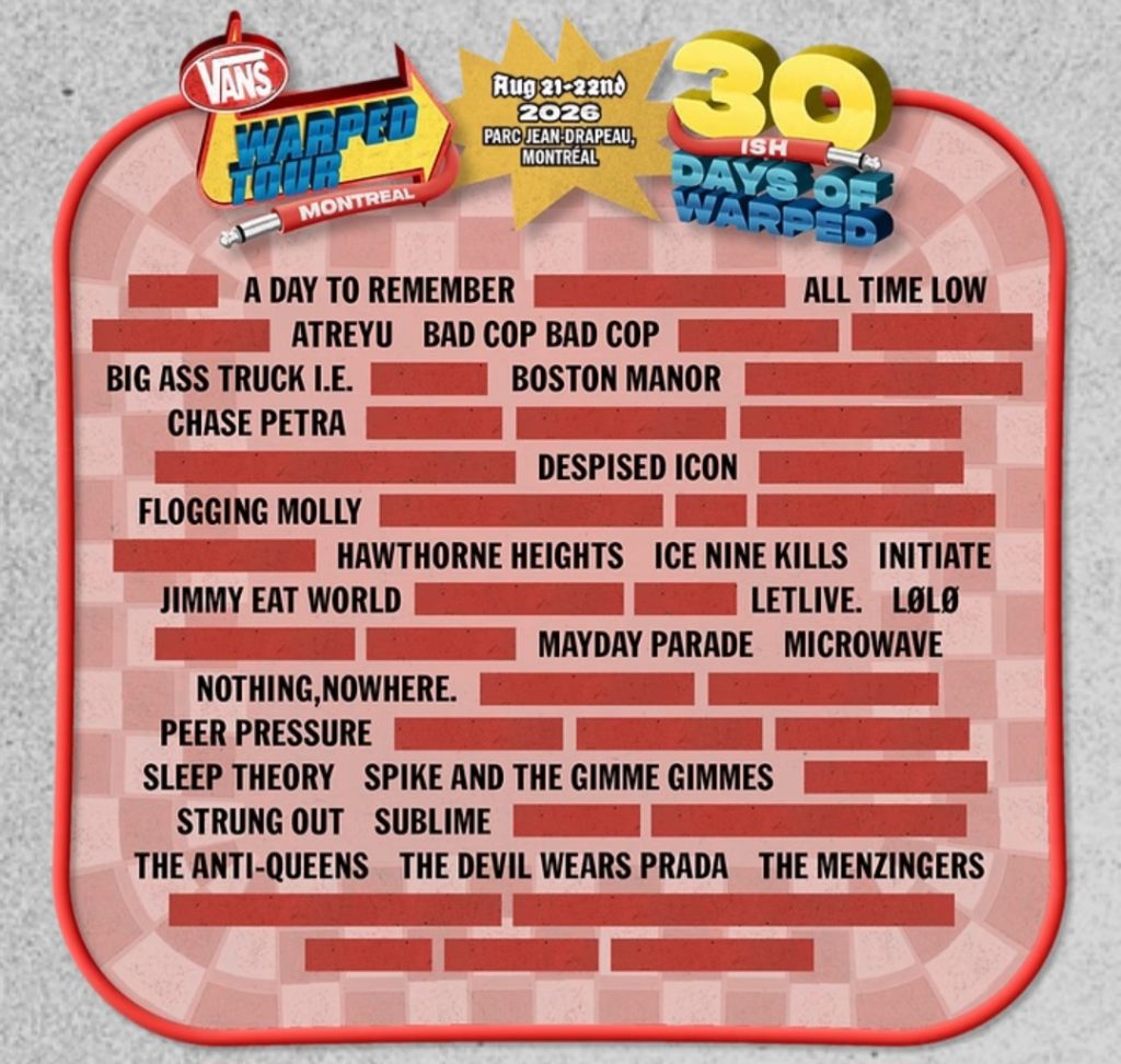 D’autres annonces sont attendues prochainement concernant la programmation complète, mais une chose est certaine, la présence de A Day To Remember place déjà la barre très haut pour l’édition montréalaise du Vans Warped Tour.